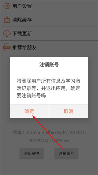 4、在彈出的提示框中,點擊確定,即可完成賬號注銷操作。