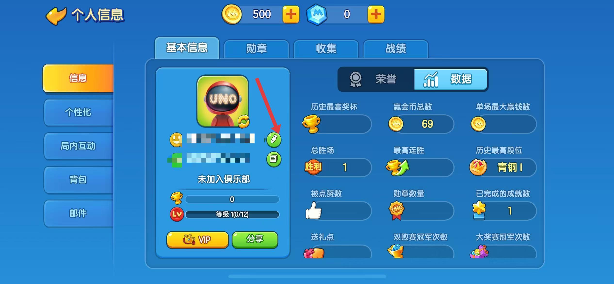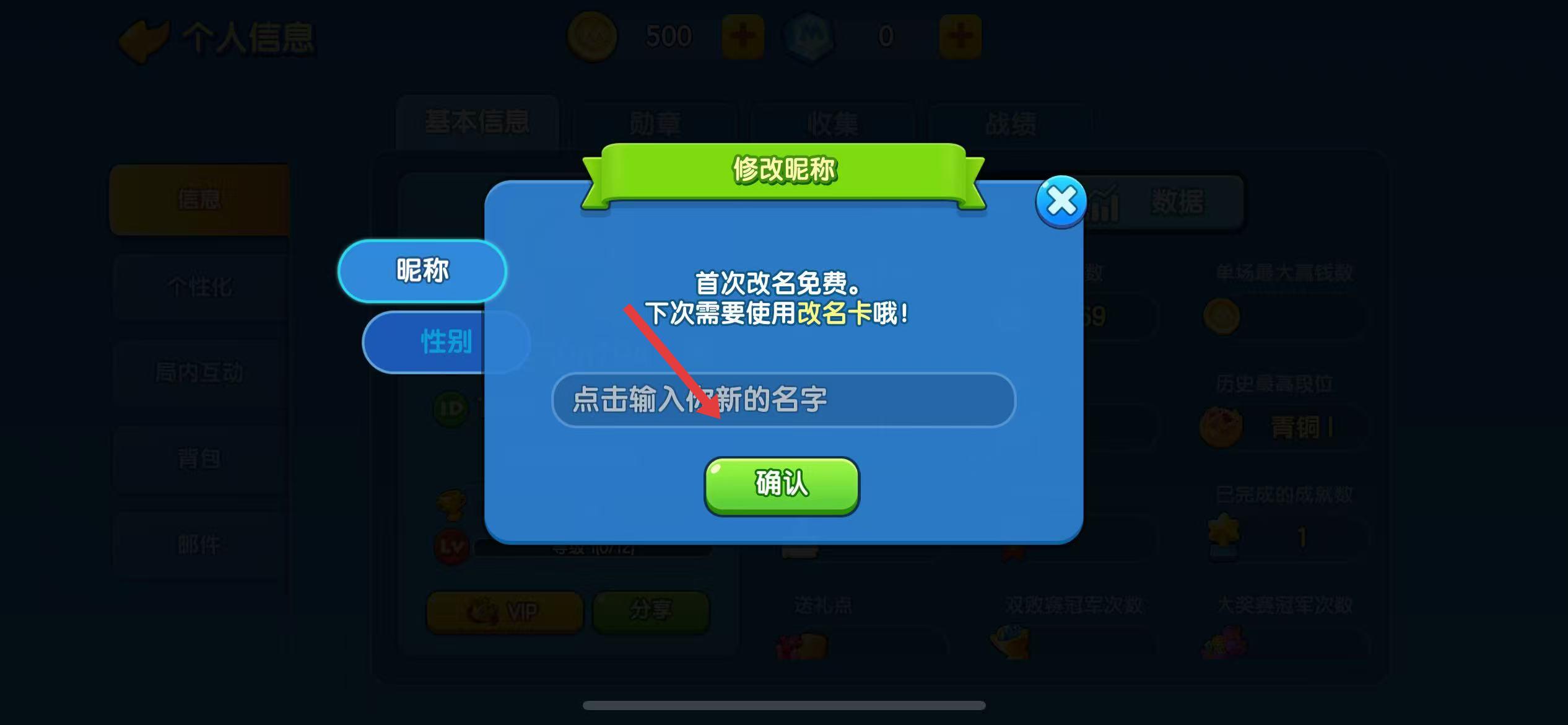 1、在游戲主界面,點(diǎn)擊左上角頭像圖標(biāo),進(jìn)入個(gè)人信息頁(yè)。