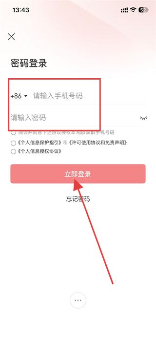 4、輸入手機(jī)號(hào)和密碼,點(diǎn)擊立即登錄即可完成登錄。