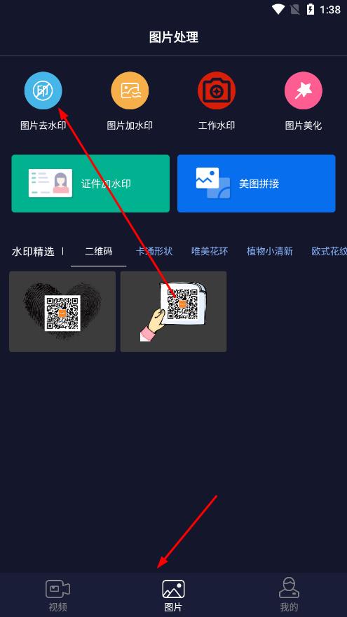 1、打開秒去水印APP,點(diǎn)擊底部導(dǎo)航欄中的圖片選項(xiàng),進(jìn)入圖片處理界面。