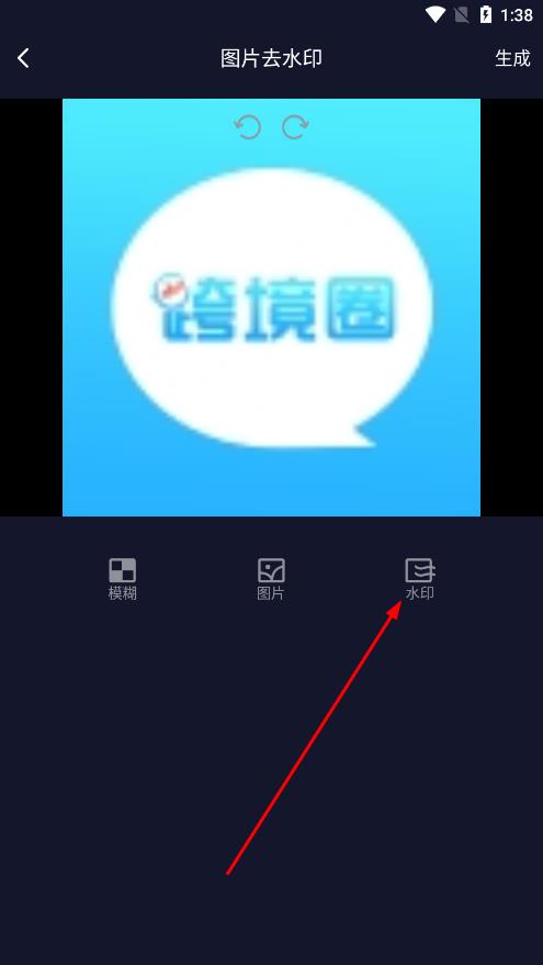 4、進(jìn)入圖片去水印編輯頁面,點(diǎn)擊下方的水印選項(xiàng),進(jìn)入水印庫。