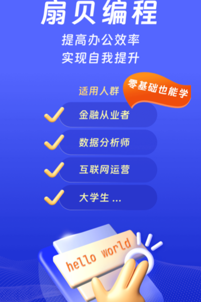 扇貝編程APP是一款可以幫助用戶在手機上就能夠?qū)W習(xí)編程的軟件,無論你是職業(yè),都可以利用這款軟件提高自己的知識面,扇貝編程將帶領(lǐng)你在不經(jīng)意之間從0到1掌握編程奧秘,寫出人生第一行代碼,帶你打開編程世界的大門。