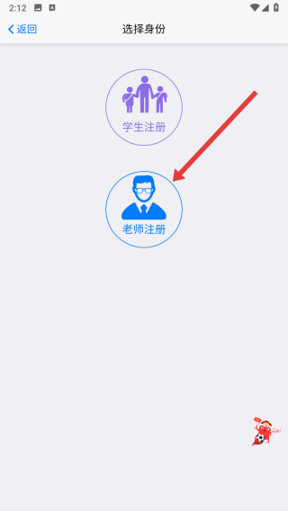 3、在選擇身份時(shí),可以點(diǎn)擊老師注冊(cè)選項(xiàng),注冊(cè)老師賬號(hào)。