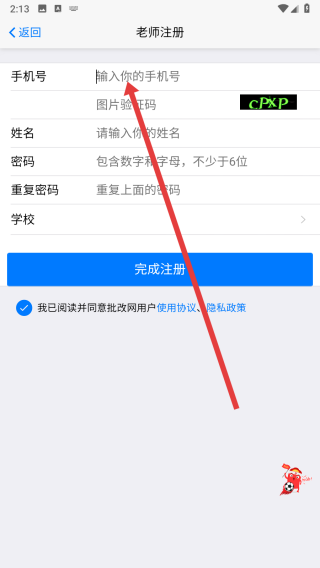 4、在跳轉(zhuǎn)到老師注冊(cè)頁(yè)面后,點(diǎn)擊輸入框填按順序?qū)懴鄳?yīng)的信息后,即可完成注冊(cè)操作。