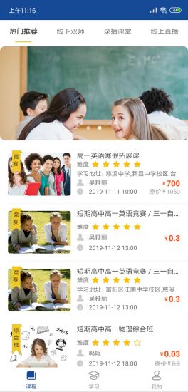 5、直播授課:大屏雙師加直播,一比一還原真實課堂;