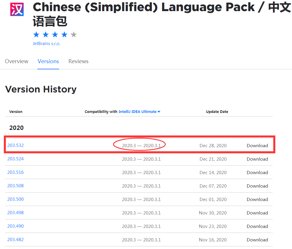 進(jìn)入離線下載地址:https://plugins.jetbrains.com/plugin/13710-chinese-simplified-language-pack----/versions