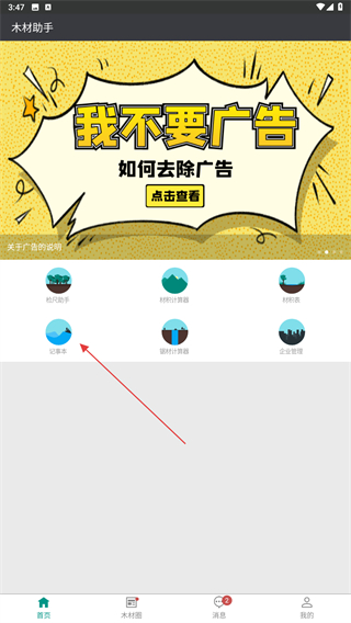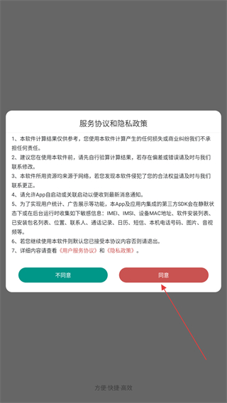 1、啟動(dòng)木材助手APP,進(jìn)入時(shí)會(huì)跳出服務(wù)協(xié)議和隱私政策,點(diǎn)擊同意的按鈕。
