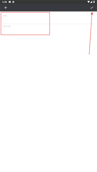 4、進(jìn)入記事的頁(yè)面內(nèi),輸入標(biāo)題、筆記內(nèi)容后,再點(diǎn)擊右上角打鉤的圖標(biāo)即可。