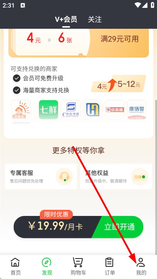 1、打開京東到家APP,點(diǎn)擊底部導(dǎo)航欄中的我的選項(xiàng)。