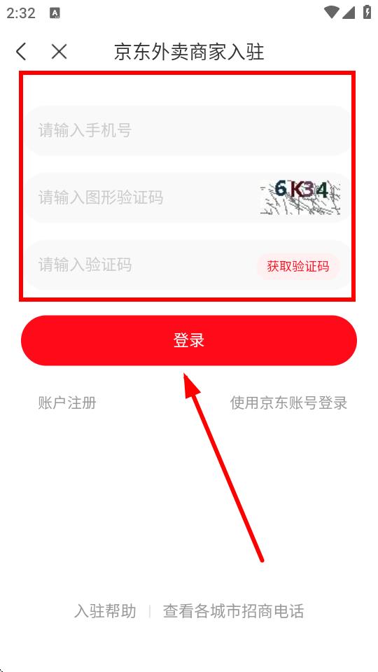 4、在彈出的登錄界面,輸入手機(jī)號(hào)、圖形驗(yàn)證碼和獲取的驗(yàn)證碼,點(diǎn)擊登錄,按后續(xù)提示完成入駐流程。