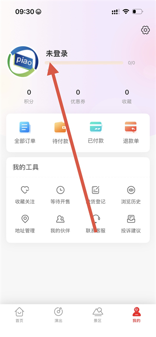 2、在個人中心頁面,點(diǎn)擊未登錄區(qū)域,進(jìn)入注冊登錄界面。