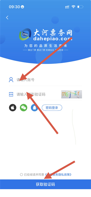 3、在注冊登錄界面,輸入賬號和驗證碼,勾選同意協(xié)議后點(diǎn)擊獲取驗證碼即可。