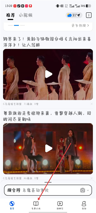 1、打開搜狗瀏覽器,點擊底部導(dǎo)航欄的免費小說選項。
