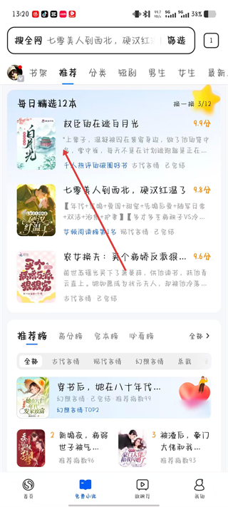 2、在免費小說頁面,選擇一本想要加入書架的小說并點擊。
