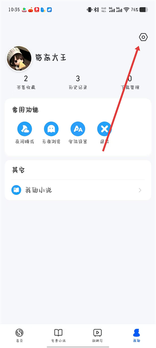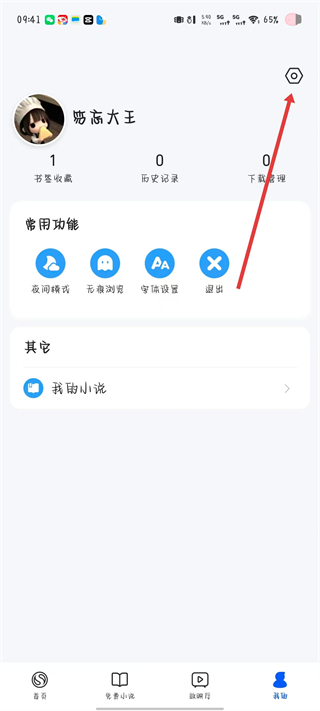 2、在個人功能頁面右上角,找到設(shè)置圖標(biāo)并點擊,進入瀏覽器的設(shè)置界面。