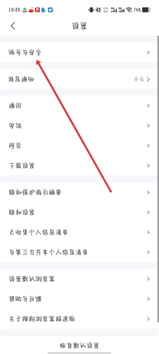 2、在設(shè)置頁面,點擊賬號與安全選項。