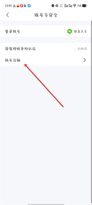 3、在賬號與安全頁面,點擊賬號注銷選項。