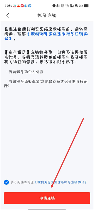 4、在賬號注銷頁面,點擊申請注銷按鈕即可。