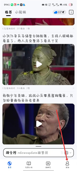 1、打開搜狗瀏覽器應(yīng)用,點擊底部導(dǎo)航欄的我的選項,進入個人功能頁面。