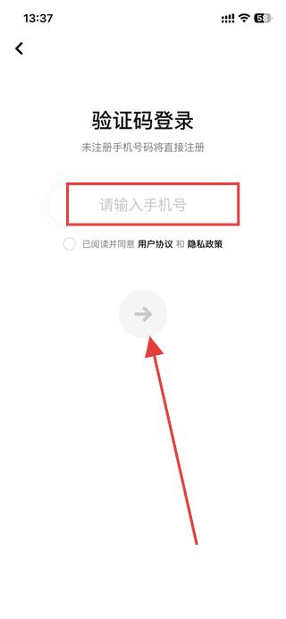 2、在登錄頁(yè)面,填寫(xiě)手機(jī)號(hào),點(diǎn)擊箭頭按鈕。