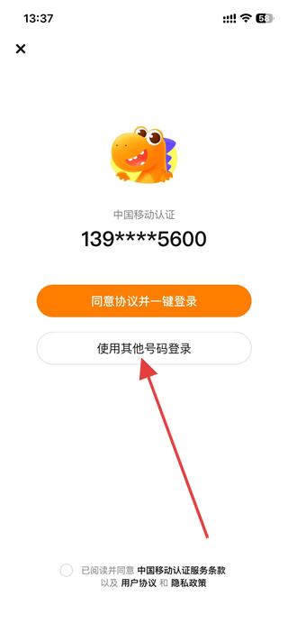 1、打開(kāi)瓜瓜龍啟蒙,點(diǎn)擊使用其他號(hào)碼登錄。