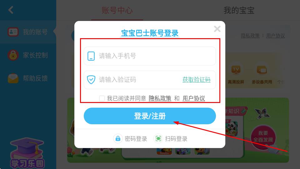 4、輸入手機(jī)號(hào)、驗(yàn)證碼,勾選同意隱私政策和用戶協(xié)議,點(diǎn)擊登錄/注冊(cè)。