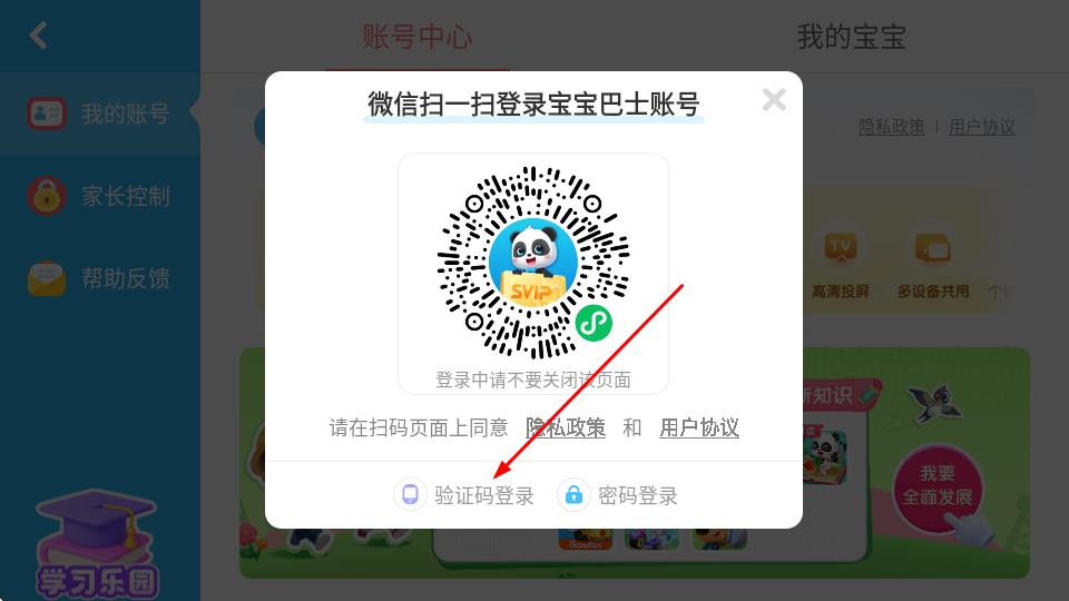 3、在彈出的登錄方式選擇窗口中,點(diǎn)擊下方的驗(yàn)證碼登錄選項(xiàng)。