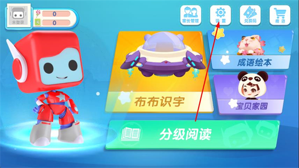 1、打開布布識字app,點擊主界面右上方的設置圖標。