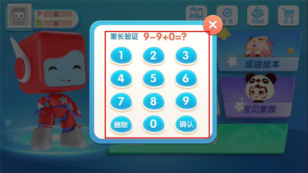 2、在彈出的家長驗證框中,輸入正確答案完成驗證。