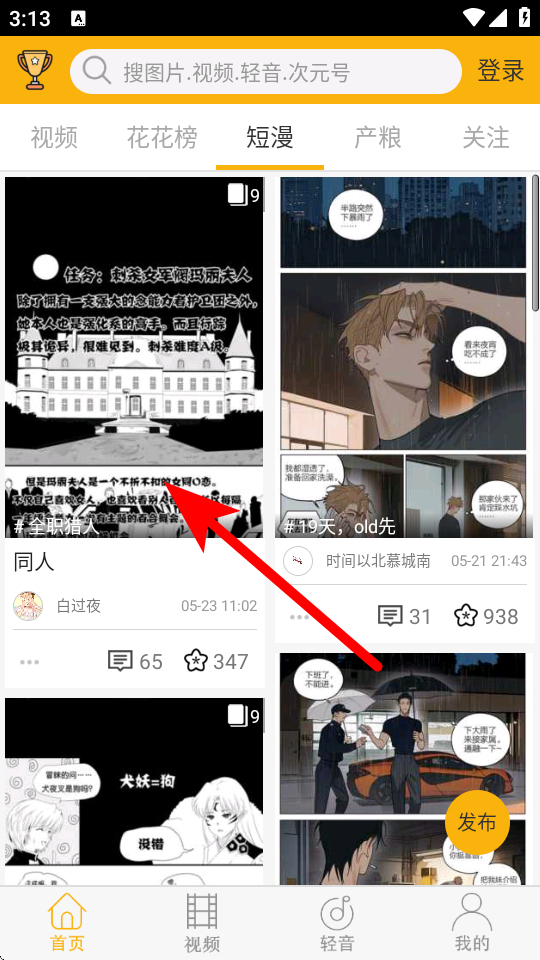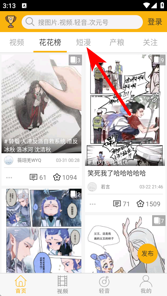 1、在柚次元首頁(yè),點(diǎn)擊短漫選項(xiàng),進(jìn)入短漫頁(yè)面。