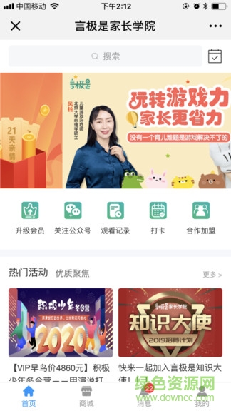 言極是家長學院安卓版是一款非常好用的家庭教育app,課程資源豐富多樣,支持在手機上查看最新的觀看記錄,可以在線打卡,還有詳細的家庭教育知識,喜愛的朋友趕快到綠色資源網下載體驗吧!