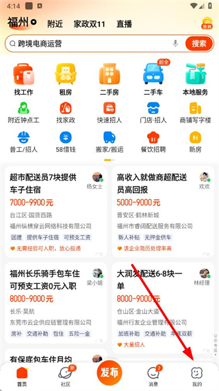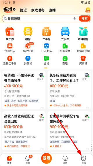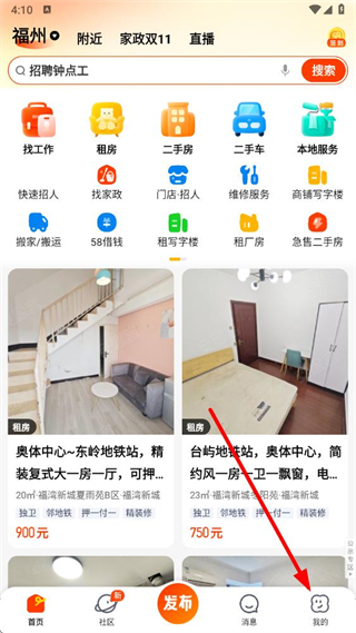 1、打開58同城APP,在首頁點(diǎn)擊右下角我的進(jìn)入個(gè)人頁面。