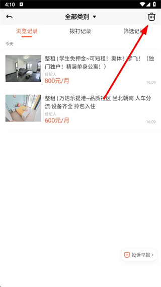 3、進(jìn)入瀏覽記錄頁面后,點(diǎn)擊右上角的垃圾桶圖標(biāo),進(jìn)入選擇刪除記錄的界面。
