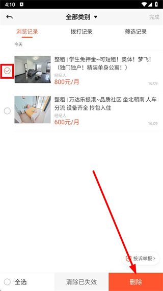 4、勾選要?jiǎng)h除的瀏覽記錄,然后點(diǎn)擊右下角的刪除按鈕即可完成刪除。