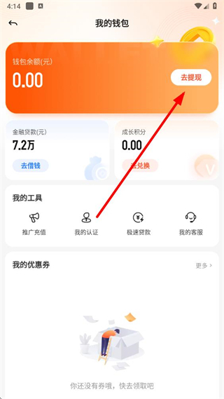 3、在我的錢包頁面,點(diǎn)擊去提現(xiàn)進(jìn)入錢包余額頁面。
