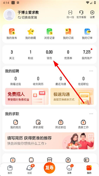 2、在個(gè)人頁面,點(diǎn)擊錢包進(jìn)入我的錢包頁面。