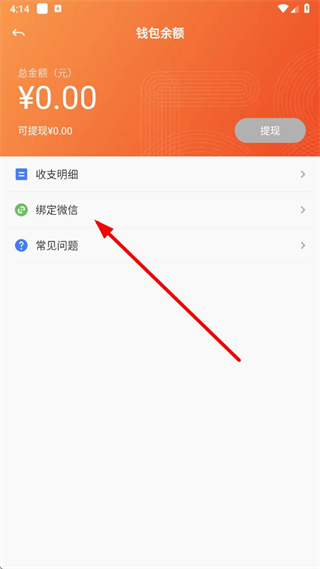 4、在錢包余額頁面,點(diǎn)擊綁定微信,按照提示操作即可完成微信綁定以用于提現(xiàn)。