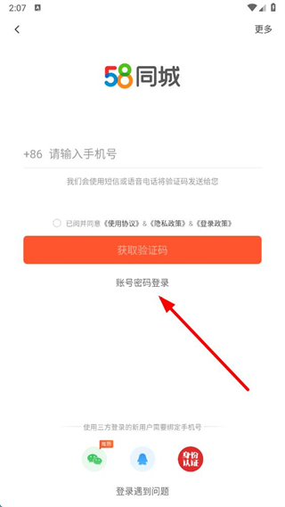2、在登錄選擇頁面,點(diǎn)擊賬號(hào)密碼登錄選項(xiàng),進(jìn)入賬號(hào)密碼登錄界面。