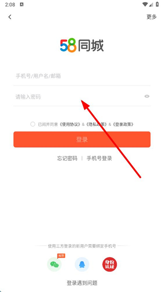 3、在界面依次輸入手機(jī)號(hào)/用戶名/郵箱和密碼,勾選同意相關(guān)協(xié)議后點(diǎn)擊登錄按鈕,完成密碼登錄操作。