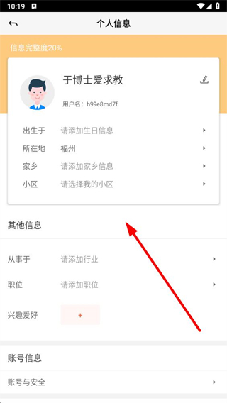 4、在個(gè)人信息頁面,可對(duì)個(gè)人信息進(jìn)行填寫或修改,完成后即可更新個(gè)人資料內(nèi)容。