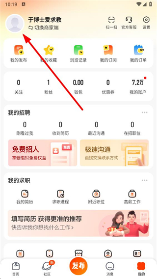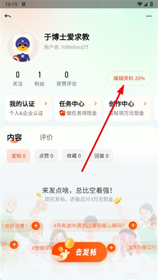 3、在個(gè)人主頁界面,找到編輯資料選項(xiàng)并點(diǎn)擊,進(jìn)入個(gè)人信息編輯頁面。