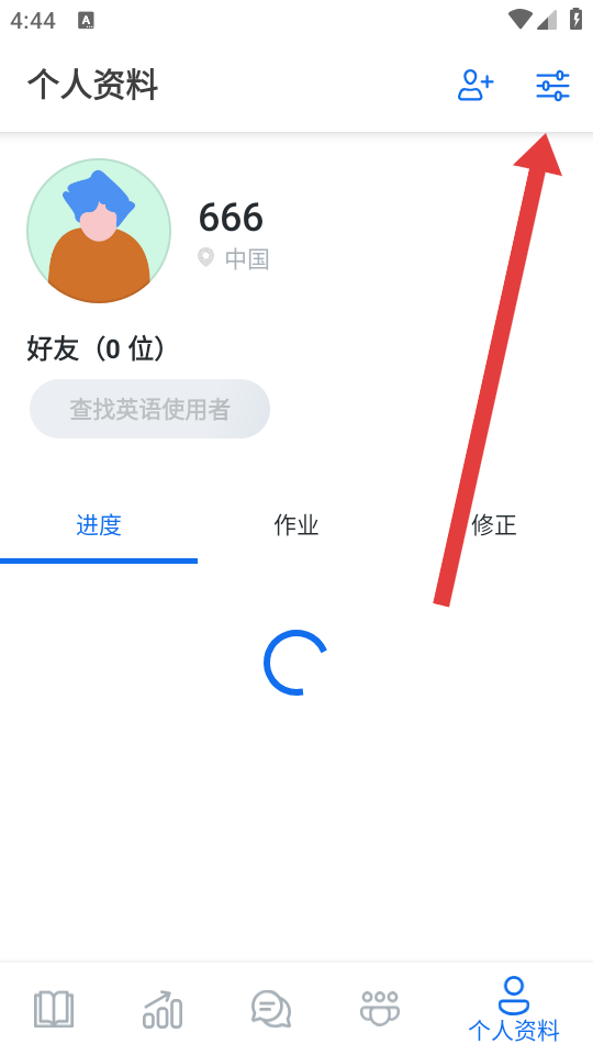 2、在個人資料界面,點擊右上角設(shè)置圖標(biāo),進(jìn)入設(shè)置的頁面。