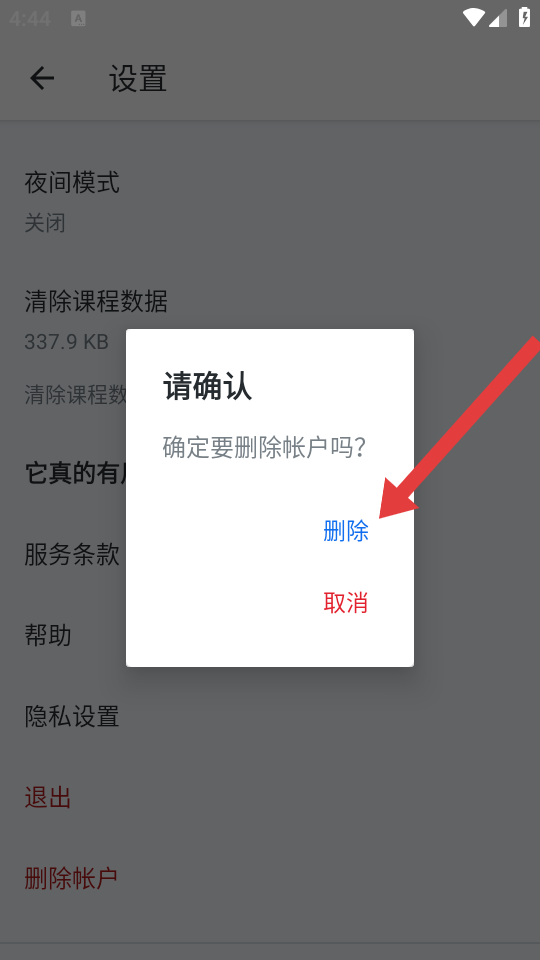 3、在設(shè)置頁面,點擊刪除帳戶選項,彈出請確認(rèn)的注銷確認(rèn)框。