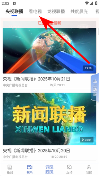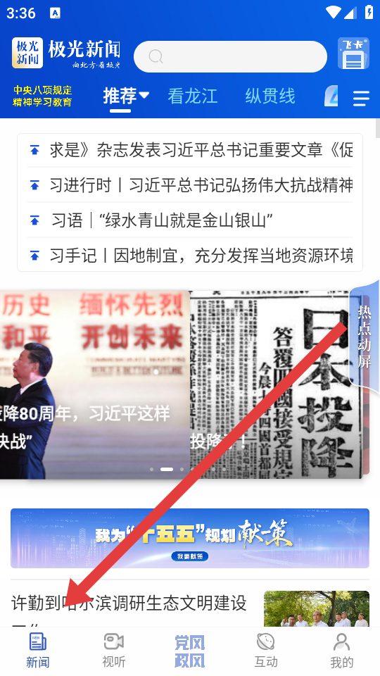 1、在極光新聞首頁(yè),點(diǎn)擊底部視聽(tīng)的按鈕,進(jìn)入視聽(tīng)的頁(yè)面。