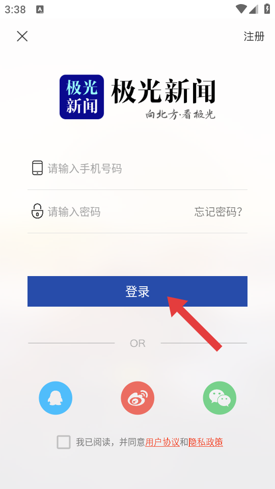 1、下載極光新聞app后打開(kāi)app,進(jìn)入極光新聞app的首頁(yè)查看了解新鮮事,在使用前可以選擇先登入賬號(hào)。