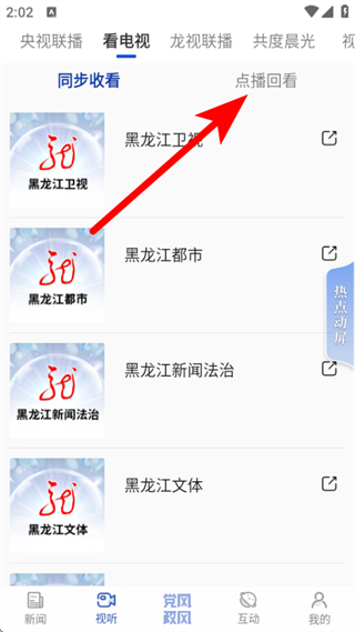 3、在看電視的板塊,點(diǎn)擊點(diǎn)播回看,進(jìn)入點(diǎn)播回看的頁(yè)面。