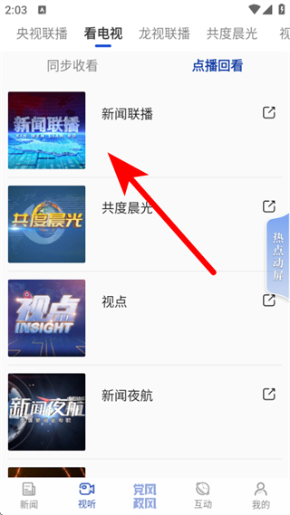 2、在視聽(tīng)的頁(yè)面,需要點(diǎn)擊看電視的選項(xiàng),進(jìn)入看電視的板塊。