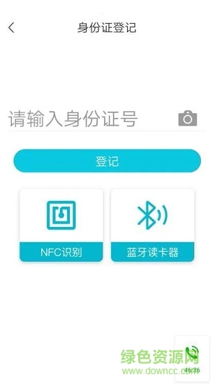 3.選擇“身份證登記”將進入此界面,通過“輸入身份證號碼”、“NFC識別”、“藍(lán)牙讀卡器”三種方式實現(xiàn)登記。
