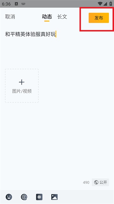 4、添加好所有的動(dòng)態(tài)內(nèi)容之后,用戶就可以點(diǎn)擊右上角的【發(fā)布】發(fā)布動(dòng)態(tài)在社區(qū)之中。