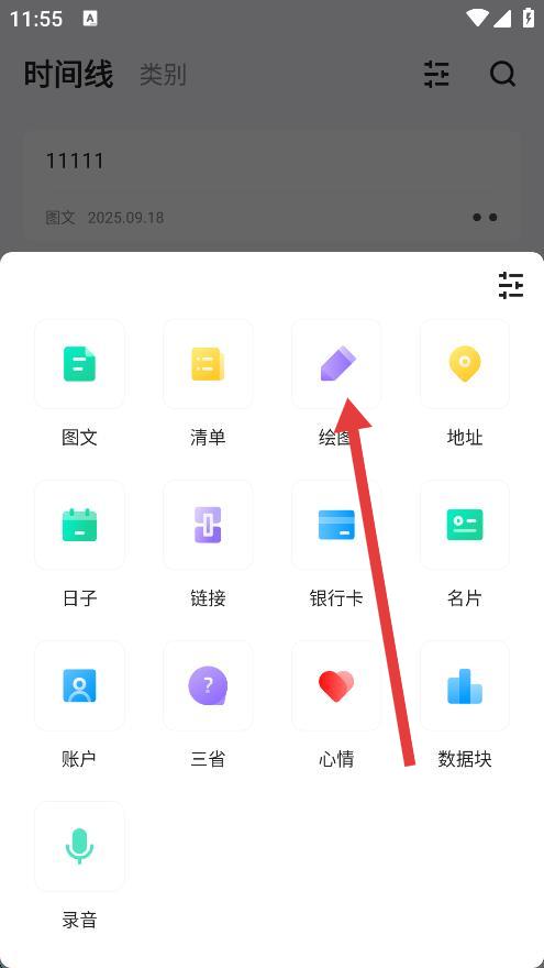 2、在彈出的添加內(nèi)容界面中,找到并點(diǎn)擊繪圖選項(xiàng),進(jìn)入繪圖編輯頁面。